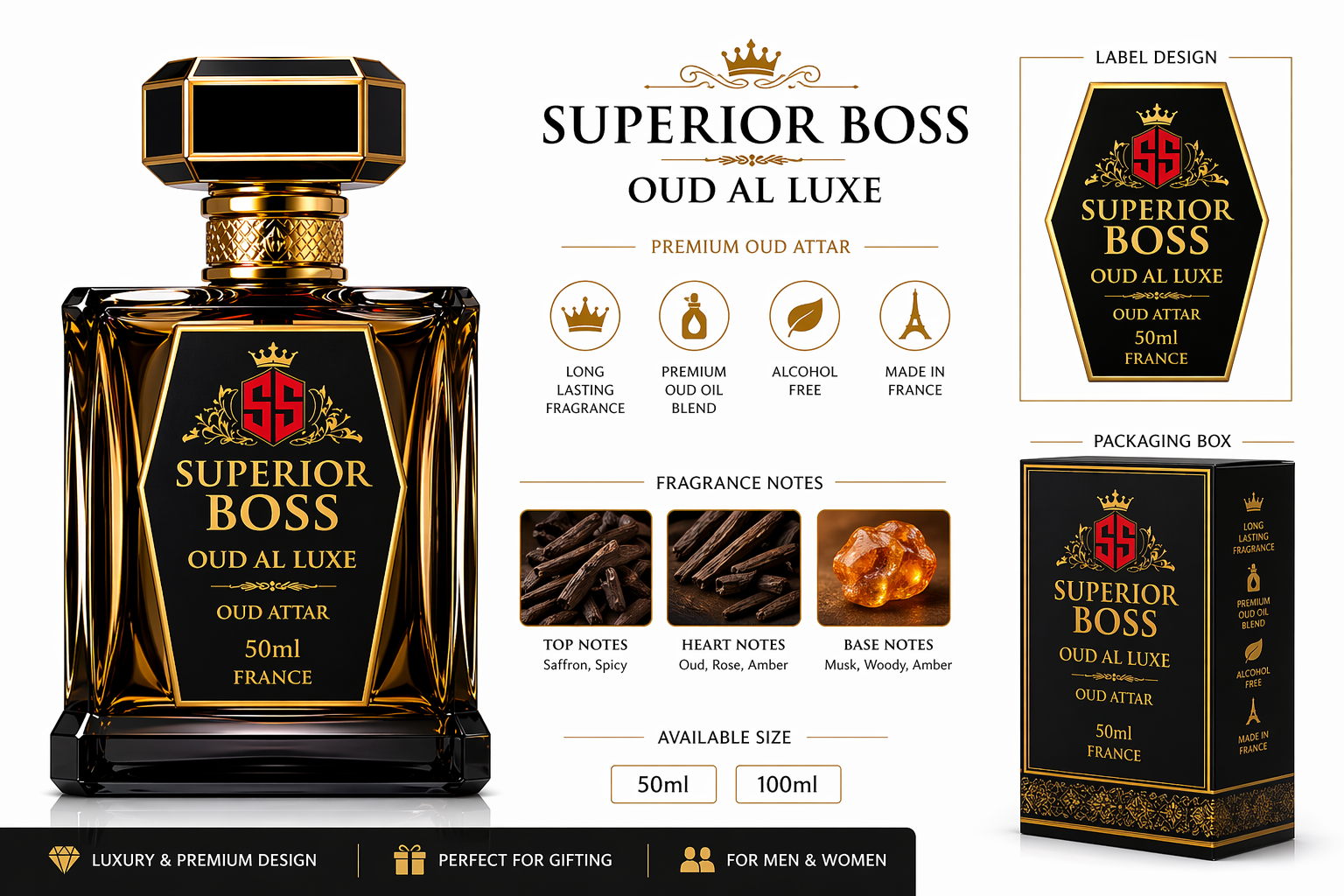 Crafted with high-quality fragrance oils, Superior Boss offers a well-balanced scent that is neither too strong nor too light, making it perfect for everyday wear as well as special occasions. The elegant glass bottle and premium design enhance its luxurious appeal, making it an ideal choice for personal use or gifting.
